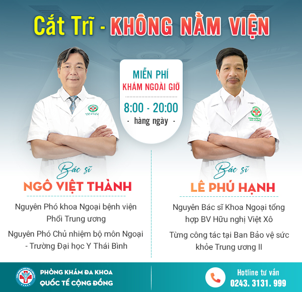 Đa khoa Quốc Tế Cộng Đồng – Chuyên Khoa Hậu Môn Trực Tràng Uy Tín Hàng Đầu Miền Bắc, được Sở Y Tế công nhận và cấp phép hoạt động. Với Đội Ngũ Bác Sĩ giàu kinh nghiệm và công nghệ HCPT II ĐỘC QUYỀN. Chúng tôi cam kết mang đến giải pháp điều trị bệnh trĩ an toàn, hiệu quả, không đau và không tái phát.